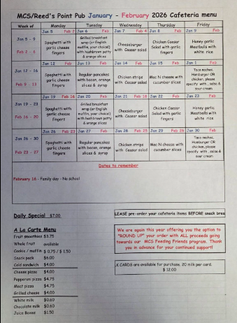 Cafeteria Menu for January and February